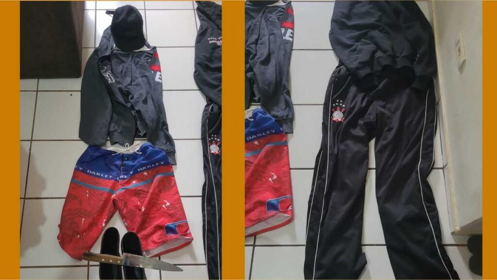 No momento do delito, um dos autores empunhava uma faca, e exigiu a pochete com dinheiro que o atendente portava. Foi levado, além do dinheiro da pochete, a quantia aproximada de R$ 400,00, que estava na conveniência do referido posto.