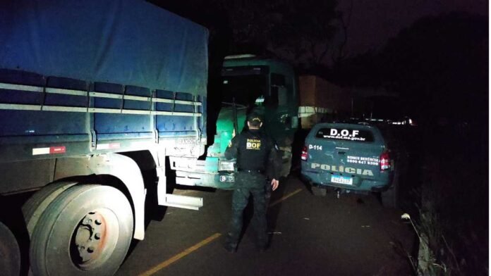 Policiais militares do DOF (Departamento de Operações de Fronteira) apreenderam, na noite de sábado (30) duas carretas Scania que seguiam pela MS-164 com 58 pneus ilegais.