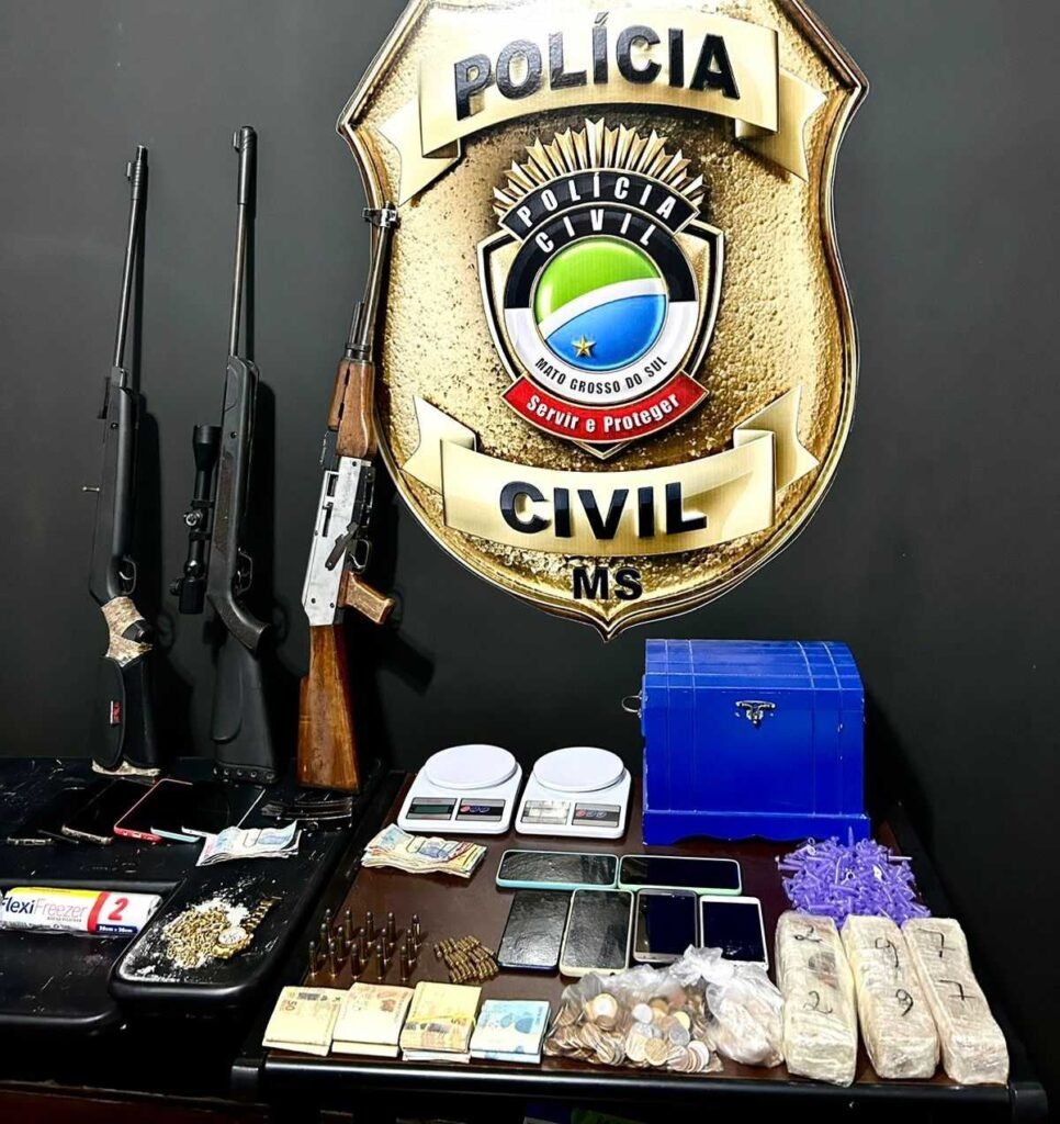 Durante a operação, os policiais cumpriram mandados de prisão e busca e apreensão na cidade de Caarapó, resultando na apreensão de vários tabletes de pasta base, frações de cocaína, armas de fogo, dentre elas uma espingarda modelo AK-47, e uma quantidade superior a R$ 10 mil em dinheiro, provenientes do tráfico de drogas.