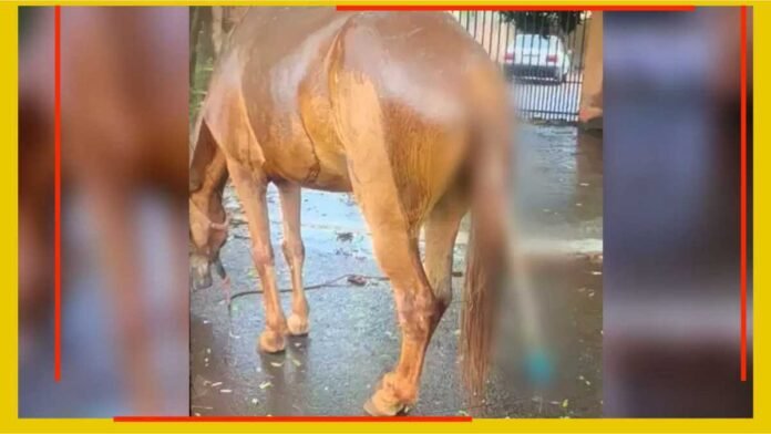 Dupla mata cavalo ao introduzir cabo de metal no ânus do animal