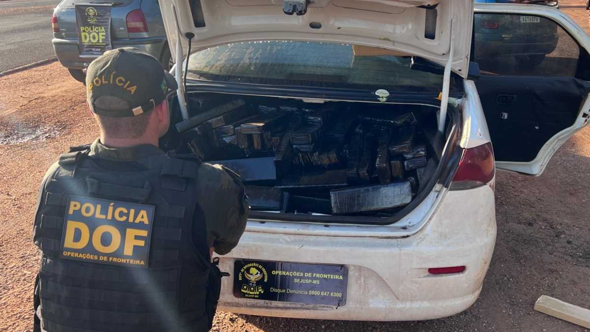 No Siena, os policiais localizaram 584 quilos de maconha. Questionado, o autor disse que pegou o veículo em Ponta Porã e levaria até Campo Grande, onde receberia sete mil reais pelo transporte.