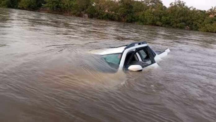 Depois de 20 minutos, encontraram o veículo quase submerso, mas dentro do veículo não havia ninguém, notaram apenas que dois vidros, sendo, da porta do passageiro dianteira e a que fica atrás do motorista estavam abertas.