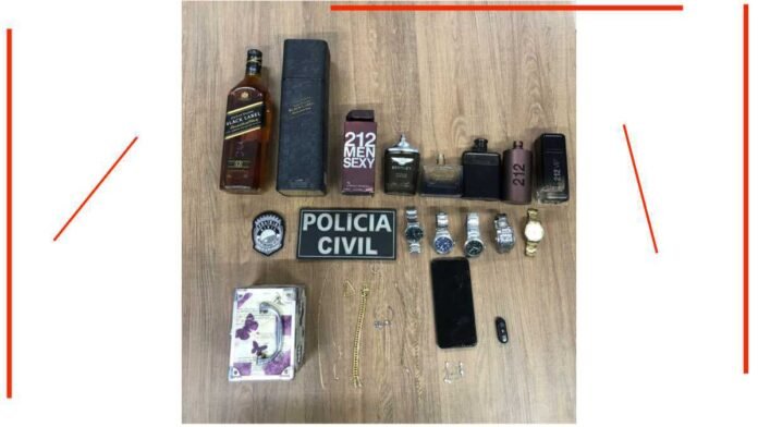 Ante ao risco de reincidência criminosa, a Polícia Civil representou pela prisão do envolvido, bem como pela busca e apreensão na residência deste, visando recuperar os bens subtraídos e angariar elementos probatórios do crime, sendo as medidas judiciais cumpridas na data de hoje. Durante as buscas, foram apreendidas joias, relógios, perfumes e bebidas de origem não comprovada, além de um aparelho celular, sendo esses objetos dispostos a análise pela equipe de investigação, visando identificar outros furtos praticados pelo grupo criminoso.