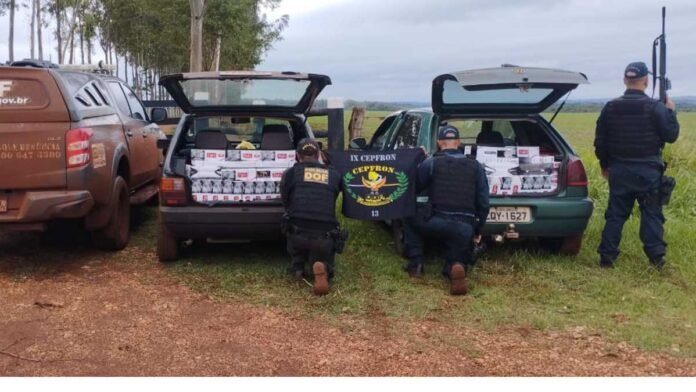 Policiais militares do DOF (Departamento de Operações de Fronteira) apreenderam, na manhã desta terça-feira (28), dois veículos carregados com 700 pacotes de cigarros de origem estrangeira, sem a documentação legal exigida para o comércio no Brasil.