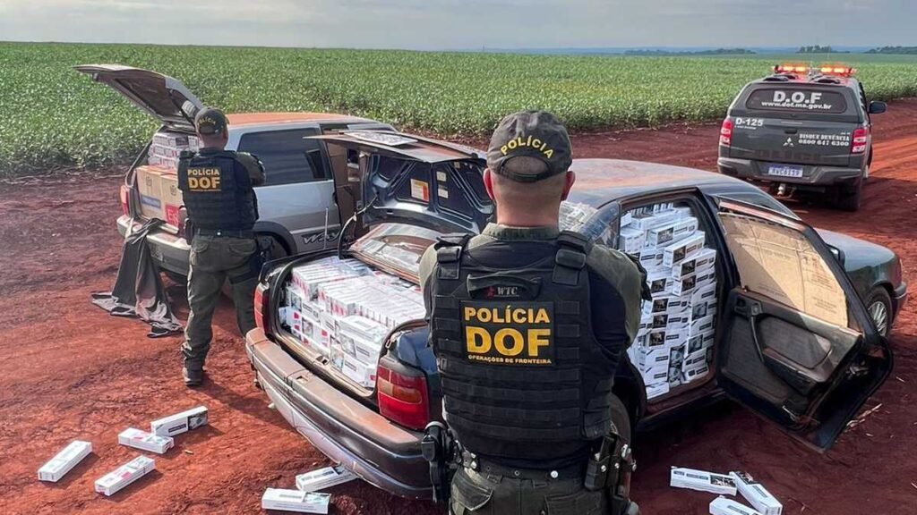 Foram apreendidos 2.750 pacotes de cigarros; 44 volumes de relógios; sete fuzis de Airsoft; um volume de caixas de bolinhas de Airsoft; dois coldres; 22 aparelhos de telefone celular; e, dois volumes de cigarros eletrônicos. Durante checagens dos agregados dos veículos, um deles estava com a numeração do chassi e motor adulterada.