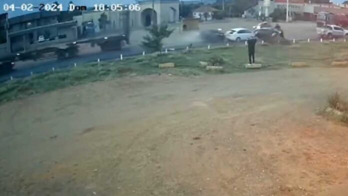 Nas imagens é possível ver o exato momento em que o automóvel provoca a