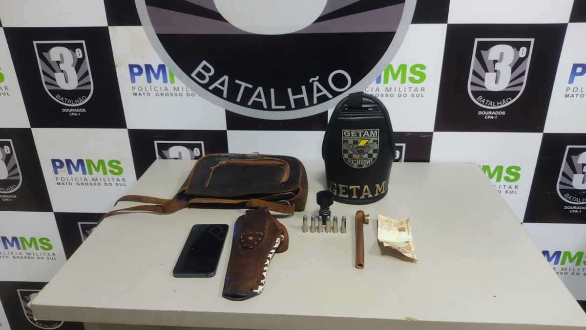 Já durante a noite, uma equipe foi acionada para averiguar uma denúncia de uma pessoa com arma de fogo em um bar localizado no bairro Jardim Ouro Verde. No local, os militares, em busca veicular, encontraram um revólver calibre .38 e seis munições do mesmo calibre. Ele também acabou sendo preso.