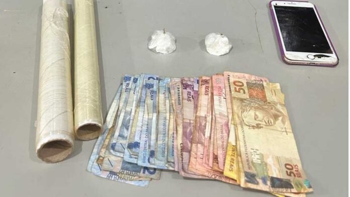 Em determinado momento, a equipe realizou a abordagem e localizou em sua posse dois pacotes contendo cerca de 20g fracionados de cocaína e dinheiro em espécie. Ao ser questionado, o homem afirmou que havia adquirido a droga há cerca de dois dias para seu consumo próprio, no entanto não soube explicar o motivo de estar levando consigo aquela quantidade de droga em seu veículo.