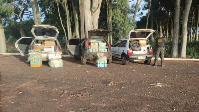 No veículo foram encontrados diversos pacotes de cigarros e pneus. Em checagem aos agregados foi constatado que as placas do Uno eram falsas. Ao todo, foram apreendidos nos três carros 9.300 relógios, 720 cigarros eletrônicos, 250 pacotes de cigarro, mil relógios e 50 pneus.