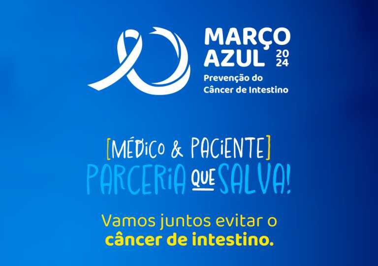 Para o ano de 2024 a Campanha Março Azul traz o tema: “Médico e paciente: Parceria que salva! Vamos juntos evitar o câncer de intestino”. A campanha busca conscientizar profissionais de saúde, gestores, agentes políticos e pacientes sobre a importância da prevenção, do diagnóstico precoce e do tratamento adequado do câncer de intestino, visando diminuir sua incidência. A ação destaca a colaboração entre o sistema de saúde e as entidades de especialidades médicas, com o objetivo de promover a saúde e o bem-estar da população.