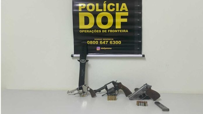 Policiais Militares do DOF (Departamento de Operações de Fronteira) prenderam na tarde de sábado (6), um homem (22) e uma mulher (32) que seguiam para Naviraí, cidade onde residem, com três armas de fogo e 18 munições.