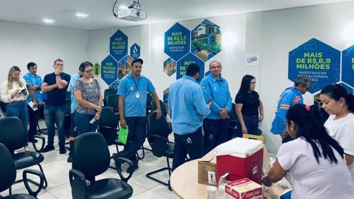 A Prefeitura de Dourados fez uma parceria com a Sanesul (Serviço de Saneamento de Mato Grosso do Sul) para que os colaboradores fossem vacinados contra a dengue e gripe nas unidades Onofre P. de Matos e Presidente Vargas. Uma parte foi atendida na última semana de abril e outra nesta semana. Pouco mais de 100 servidores participaram da ação e, os que receberam as duas vacinas, precisaram de um intervalo de 24 horas entre uma e outra.