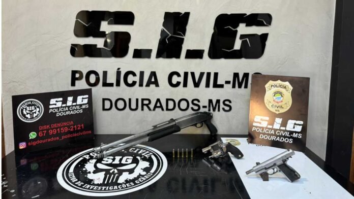 A Polícia Civil, por intermédio da Seção de Investigações Gerais e Núcleo Regional de Inteligência (SIG/NRI) de Dourados-MS, prendeu nesta quinta-feira, 06/06, um grupo envolvido com venda de armas ilegais. A prisão aconteceu na Rua Filomeno Pires, no Bairro Parque das Nações I.