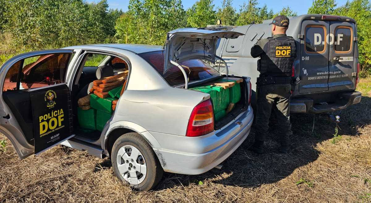 Policiais militares do DOF (Departamento de Operações de Fronteira) apreenderam nesta terça-feira (11), na MS-164 em Ponta Porã, um veículo GM Astra carregado com quase 600 quilos de drogas. Na ação ninguém foi preso.