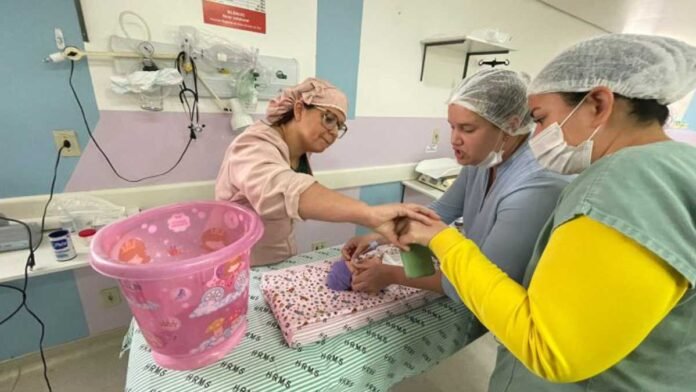 Ana Carolina Aragão destacou a importância do treinamento: “Realizamos as oficinas práticas onde abordamos o cuidado com bebê como posicionamento , amamentação, troca de fraldas , pesagem, aspiração, uso adequado do CPAP entre outros cuidados de extrema importância para um cuidado de forma humanizada e individualizada para nossos bebês.”