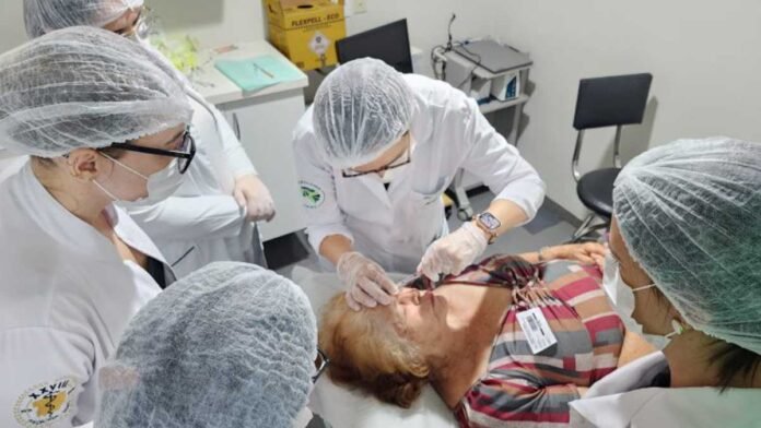A primeira paciente a receber o tratamento no hospital foi a aposentada Reny Garnacho, de 86 anos. Ela tem diagnóstico de blefaroespasmo, que é um transtorno neurológico que causa contrações involuntárias das pálpebras, resultando em piscar involuntário e fechamento dos olhos, desde 2009.