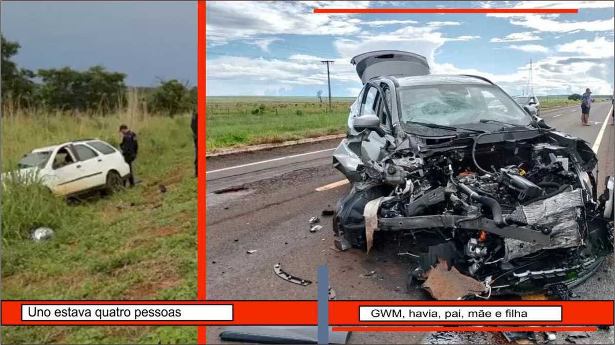 Um acidente registrado durante este domingo (02), acabou ceifando a vida de três pessoas e deixando outras quatros feridas. A Colisão frontal envolveu um veículo utilitário elétrico GWM Haval e um Fiat Palio Weekend na BR-060, em Chapadão do Sul.