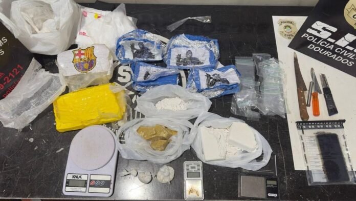 A Polícia Civil, por intermédio do Setor de Investigações Gerais (SIG) de Dourados, prendeu em flagrante, na tarde desta terça-feira (29), um homem identificado pelas iniciais T.N.S., 38 anos de idade, pelo crime de tráfico de drogas. A prisão ocorreu em uma residência no bairro Jardim Rasselen, após denúncia anônima indicar intensa movimentação suspeita no local.