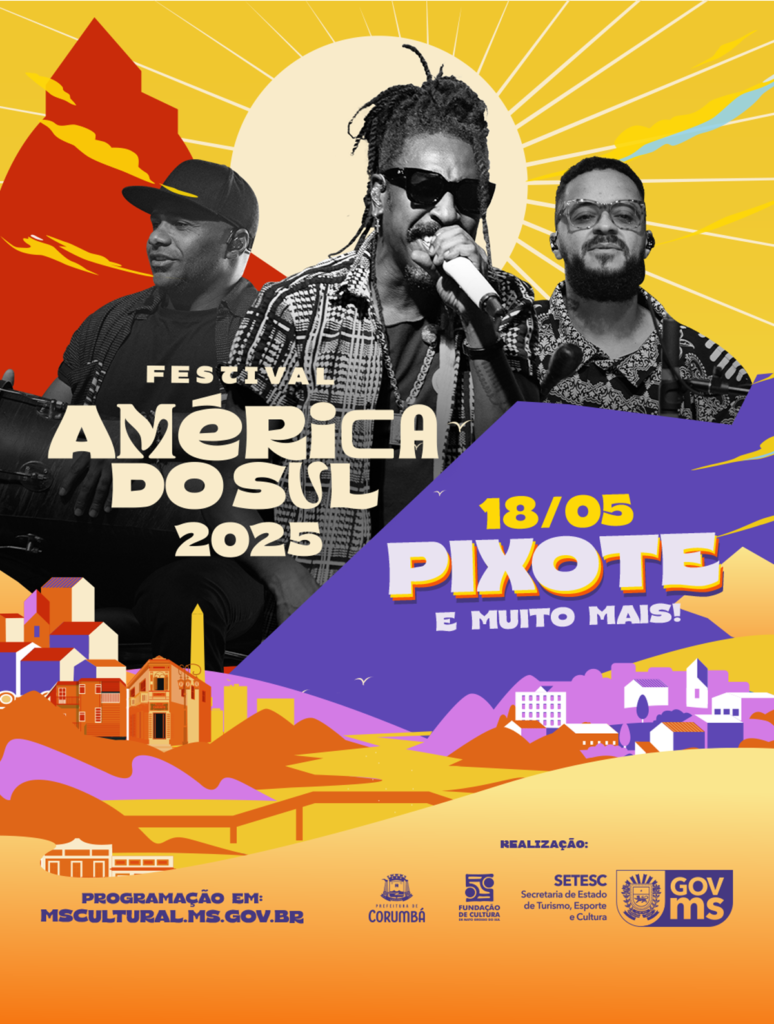 O Porto Geral de Corumbá será o grande palco das apresentações culturais do FAS (Festival América do Sul) 2025, que acontece de 15 a 18 de maio. Com programação que valoriza a música brasileira e a cultura latina, o festival reunirá atrações nacionais de peso como Duduca & Dalvan, Xamã, Alcione e Pixote, para as margens do Rio Paraguai em um cenário que vibra com arte, cultura e emoção.