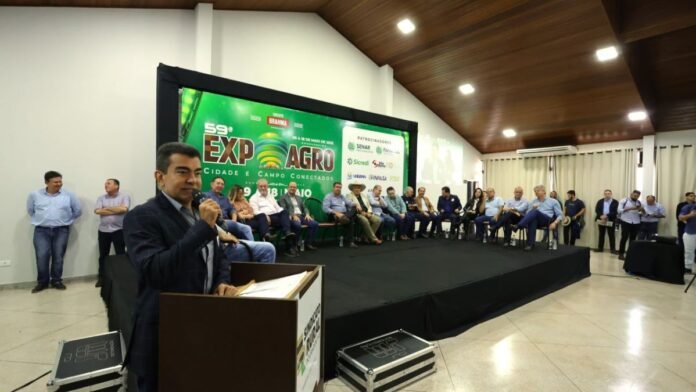 Em seu discurso, Marçal Filho parabenizou Gino Ferreira pela realização da Expoagro, que, segundo ele, “entra para a história”. O prefeito exaltou o protagonismo de Dourados e do Estado no agro nacional, citando o crescimento em áreas antes pouco exploradas, como a produção de laranja, amendoim e celulose, fruto do trabalho iniciado ainda na gestão do ex-governador Reinaldo Azambuja.