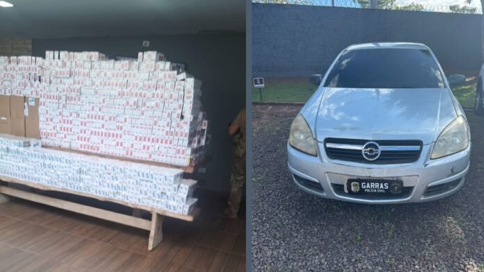 A equipe identificou um veículo Vectra, apenas com o banco do motorista, ou seja, preparado para transporte de mercadoria ilícita, e com mais duas caixas de cigarro de origem estrangeira em seu interior. Neste momento, após ser questionado acerca da mercadoria ilícita, o autor confessou que estava descarregando cigarros do Paraguai, sendo que as demais caixas estariam na varanda da casa e, no interior do imóvel, teria droga e uma arma de fogo.