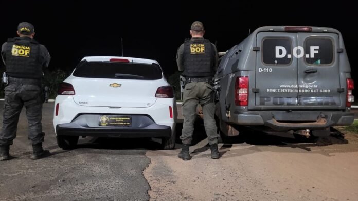 Policiais militares do DOF (Departamento de Operações de Fronteira) recuperaram nesta segunda-feira (19), em Tacuru, um veículo Chevrolet Onix, de cor branca, que seguia com destino a cidade de Paranhos. Na ação, um homem de 25 anos foi preso.