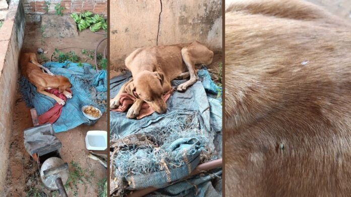 Após o recebimento de denúncias relatando situação de maus-tratos, uma equipe policial se deslocou até o local indicado, onde encontrou um cão de porte médio/grande, de cor caramelo, em visível estado de abandono e sofrimento. O animal apresentava sinais de desnutrição, infestação por carrapatos e lesões aparentes em ambos os olhos, cuja causa ainda será apurada.