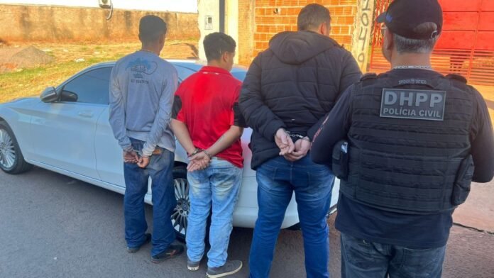 Mediante monitoramento na tarde de ontem, três dos autores foram presos em Ribas do Rio Pardo no momento em que se encontravam reunidos, os quais se encontravam a bordo de um automóvel de alto valor, uma Mercedes.