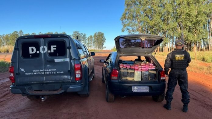 Policiais militares do DOF (Departamento de Operações de Fronteira) apreenderam nesta terça-feira (24), em Eldorado, 329 quilos de maconha que eram transportada em um VW Gol, de cor cinza. Na ação, um homem de 21 anos foi preso.