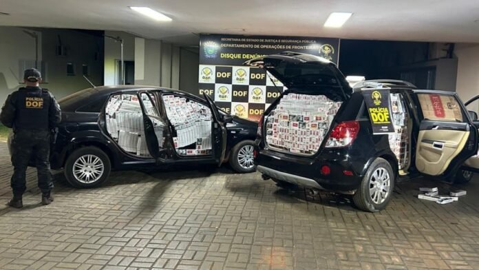 Policiais militares do Departamento de Operações de Fronteira (DOF) apreenderam, nesta segunda-feira (21), dois veículos carregados com cigarros contrabandeados em Rio Brilhante. Durante a ação, foram detidos dois homens, de 21 e 31 anos.