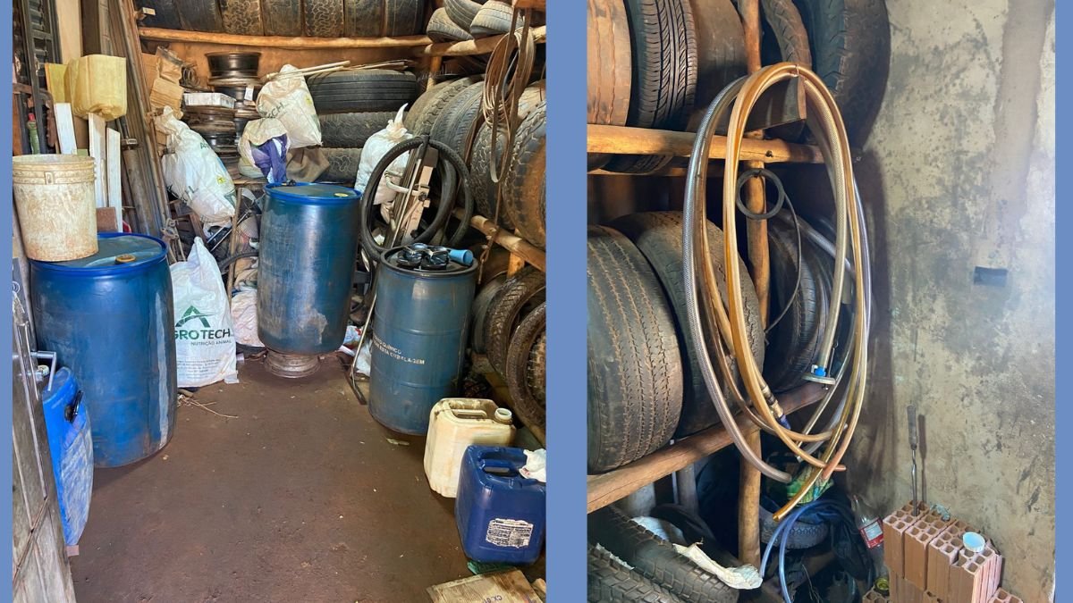 Em vistoria realizada em um cômodo nos fundos do imóvel, os agentes localizaram galões contendo gasolina, etanol e óleo diesel, totalizando cerca de 1.150 litros. Todo o material estava armazenado sem controle técnico ou autorização legal.