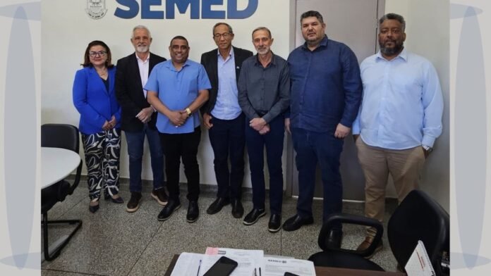 A Secretaria Municipal de Educação recebeu nesta quinta-feira (14) a Comissão de Educação da Câmara Municipal para discutir a realização de uma Audiência Pública que buscará soluções para a demanda por vagas na Rede Municipal de Ensino (Reme) de Dourados. O encontro contou com a presença do secretário municipal de Educação, Nilson Francisco da Silva, sua equipe técnica e os vereadores Elias Ishy (presidente da Comissão), Rogério Yuri e Sérgio Nogueira.