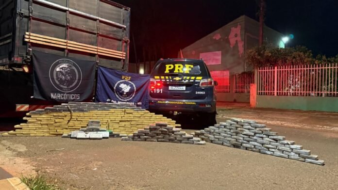 A droga, estimada em cerca de R$ 24,1 milhões, estava embalada em 300 tabletes e ocultada em compartimentos de uma carreta Scania acoplada a um semirreboque. O caminhão, avaliado em aproximadamente R$ 500 mil, também foi apreendido.