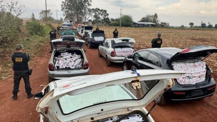 Policiais do Departamento de Operações de Fronteira (DOF) apreenderam, nesta segunda-feira (6), 17 veículos usados no transporte de mercadorias de contrabando e descaminho no Assentamento Itamarati, em Ponta Porã. Quatorze pessoas foram detidas em flagrante — 12 homens e duas mulheres.