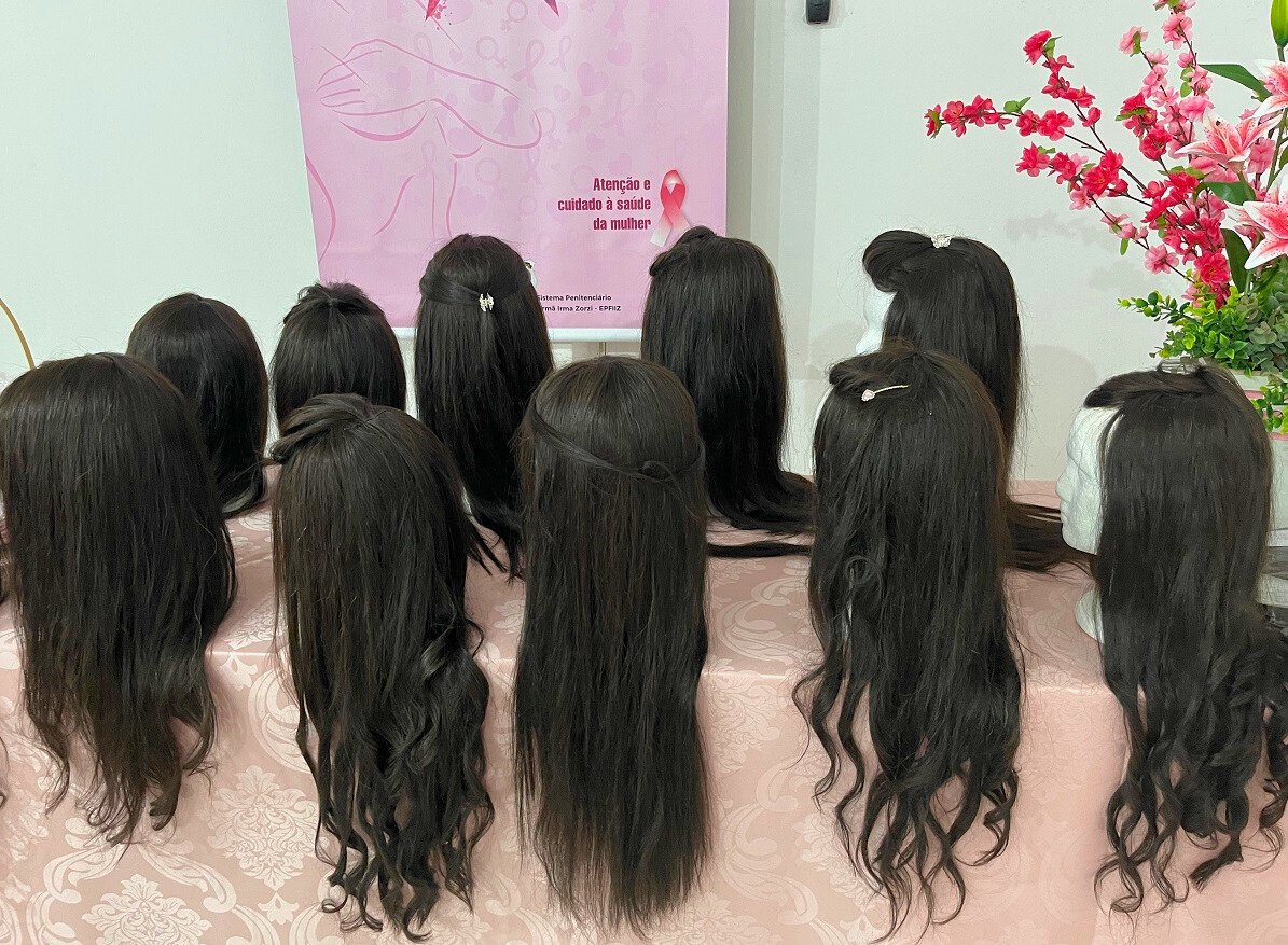 O Estabelecimento Penal Feminino “Irmã Irma Zorzi”, em Campo Grande, realizou na terça-feira (7 de outubro) a entrega de 123 perucas confeccionadas por reeducandas do setor de artesanato da unidade. A ação faz parte da programação do Outubro Rosa.