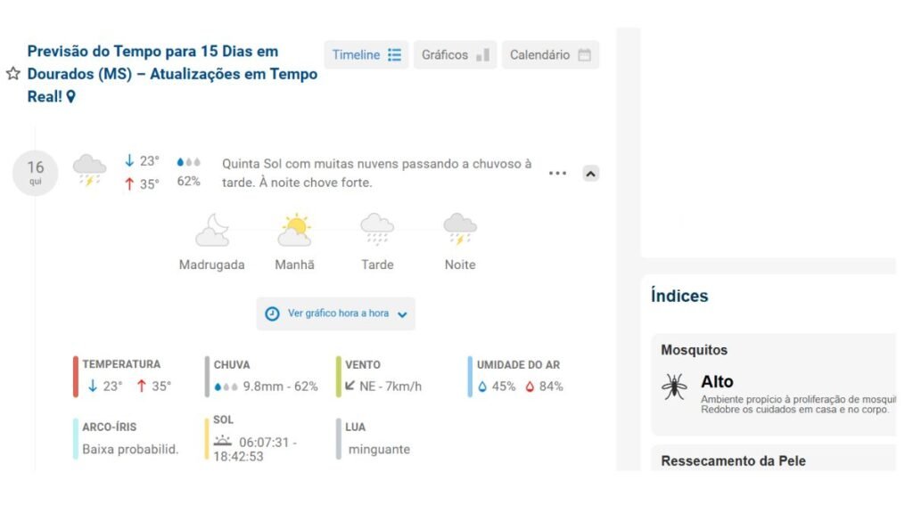 As temperaturas mínimas devem cair para 14°C a 16°C em municípios do sul, enquanto nas demais regiões os termômetros variam entre 18°C e 24°C. As máximas ficam entre 29°C e 36°C, podendo chegar a 39°C no Pantanal e sudoeste. Em Campo Grande, a previsão é de mínimas entre 21°C e 23°C e máximas de até 34°C.