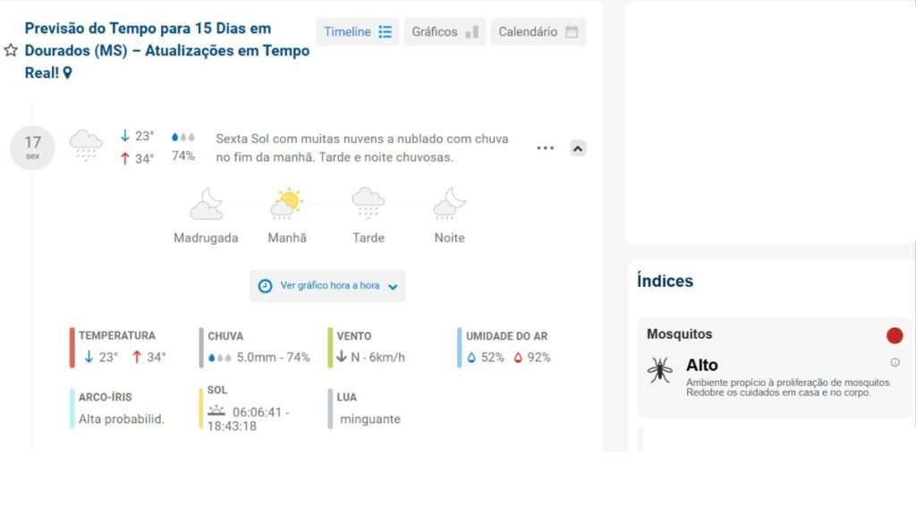 Previsão do tempo para esta sexta-feira 17/10 a terça-feira 21/10 em Dourados e região