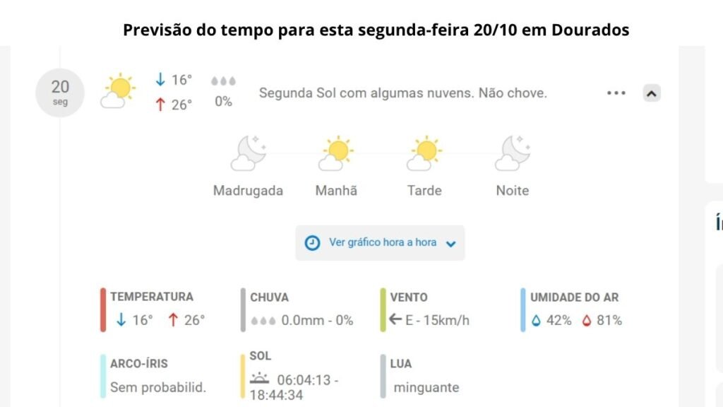 Previsão do tempo para esta segunda-feira 20/10 em Dourados e região