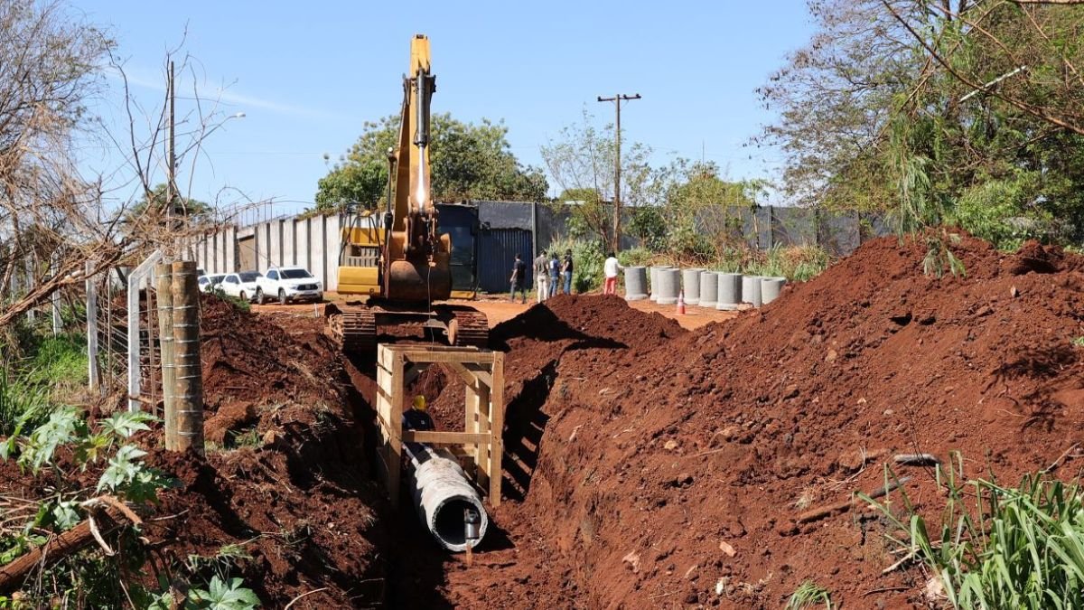 A Prefeitura de Dourados iniciou nesta quinta-feira (23) as obras de drenagem, pavimentação, sinalização viária e calçamento com acessibilidade em parte do Jardim Laranja Doce. Os trabalhos começaram com a escavação para a construção das galerias pluviais na via ao lado da Unei Masculina, e fazem parte de um amplo projeto de melhoria da infraestrutura urbana do bairro.