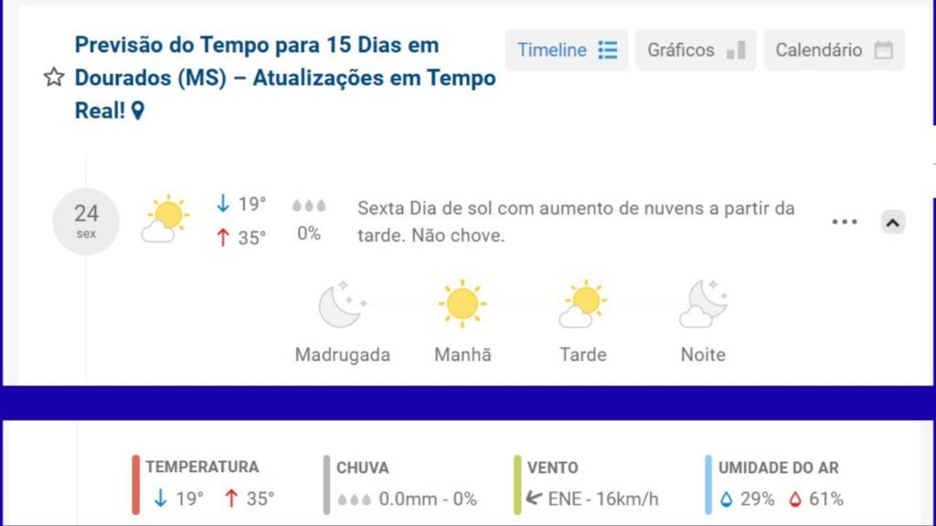 Previsão do tempo para esta sexta-feira 24/10 em Dourados