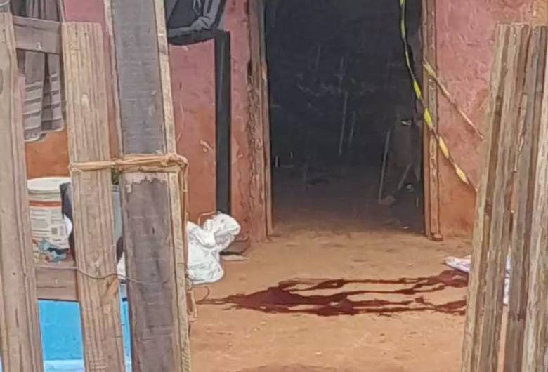 Marcas de sangue foram encontradas espalhadas pelo imóvel, evidenciando a brutalidade do crime.