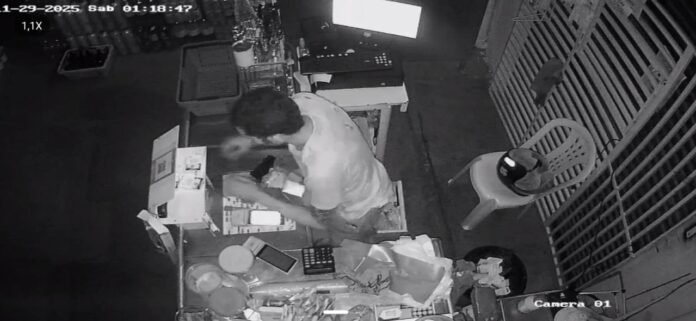 Conforme apurado, ele participou do arrombamento de uma conveniência e de uma casa de carnes no centro da cidade, de onde foram levados alimentos, bebidas, chinelos e dinheiro após a ruptura da parede dos fundos.
