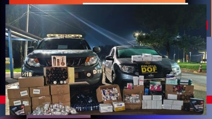 A ação ocorreu durante um bloqueio na zona rural. O material estava em um Renault Logan dirigido por um homem de 36 anos. Além das canetas, os policiais localizaram 586 suplementos e 140 frascos de perfume no veículo.