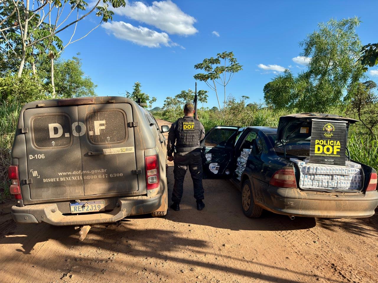 Policiais do Departamento de Operações de Fronteira (DOF) apreenderam, na quarta-feira (10), um GM Vectra na Aldeia Buriti, em Sidrolândia. No veículo foram encontrados 250 quilos de agrotóxicos e 500 pacotes de cigarros contrabandeados do Paraguai.