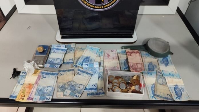 Por volta das 14h, os policiais observaram quando S.N.D.S., de 45 anos, saiu da residência, recebeu uma quantia em dinheiro de O.A.D., de 33 anos, e entregou uma porção de cocaína antes de retornar ao imóvel. A equipe abordou O.A.D. no local.
