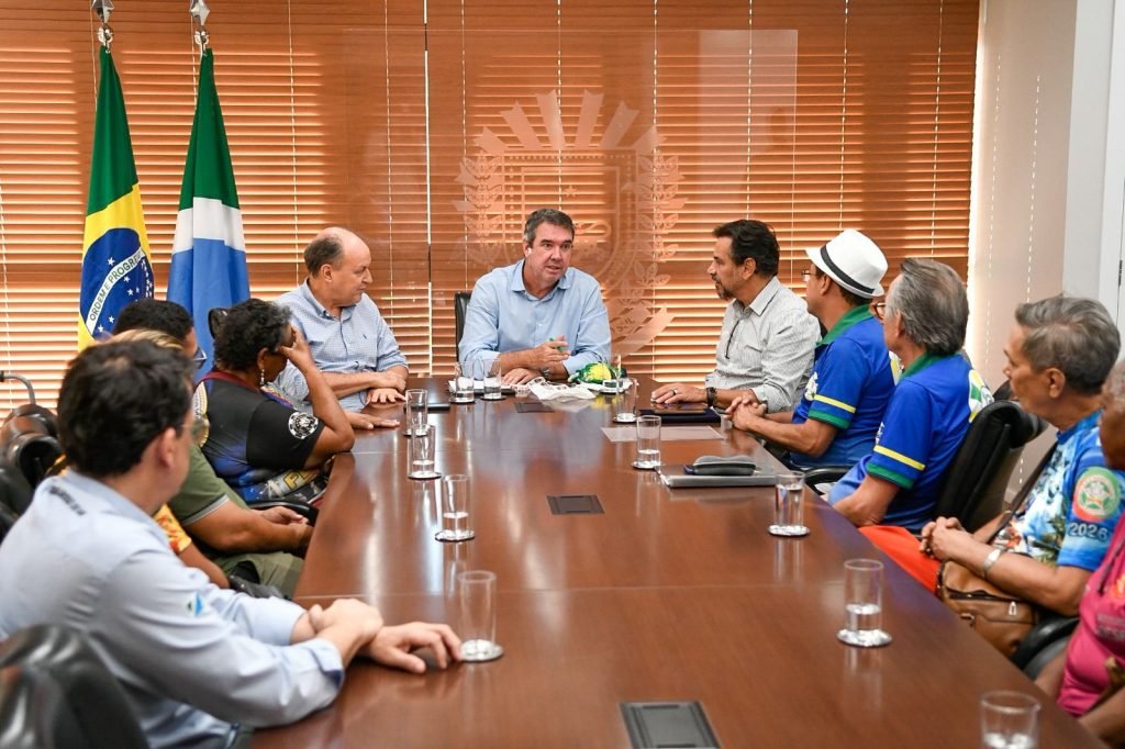 Na tarde de segunda-feira (9), o governador Eduardo Riedel recebeu representantes da Liga das Entidades Carnavalescas de Campo Grande (Lienca). Também participaram da reunião o secretário da Setesc, Marcelo Miranda, e o diretor-presidente da FCMS, Eduardo Mendes. A diretoria da Lienca agradeceu o repasse de recursos e a infraestrutura destinada ao Carnaval.