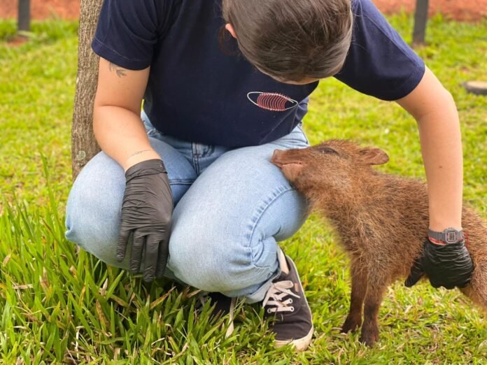 Flora, cateto fêmea que não pôde ser reintroduzida, ganha novo lar no Bioparque Pantanal