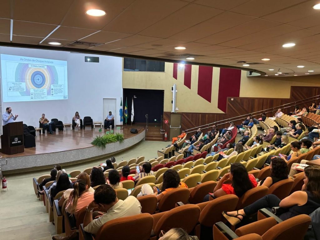 O encontro ocorreu no auditório do CREA-MS e reuniu cerca de 150 participantes, entre gestores, profissionais de saúde, representantes de instituições públicas e privadas, trabalhadores do transporte e logística e integrantes do controle social.