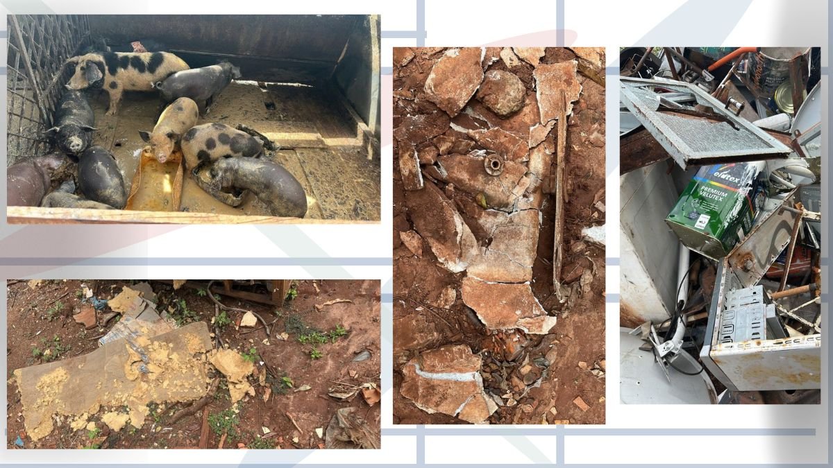 A perícia e agentes encontraram restos de caixas d’água de amianto, lã de vidro, baterias de computador de lítio e cilindros vazios de gás refrigerante de uso hospitalar. Também foram constatados um chiqueiro com porcos, aves como galinhas e patos e um bar clandestino.